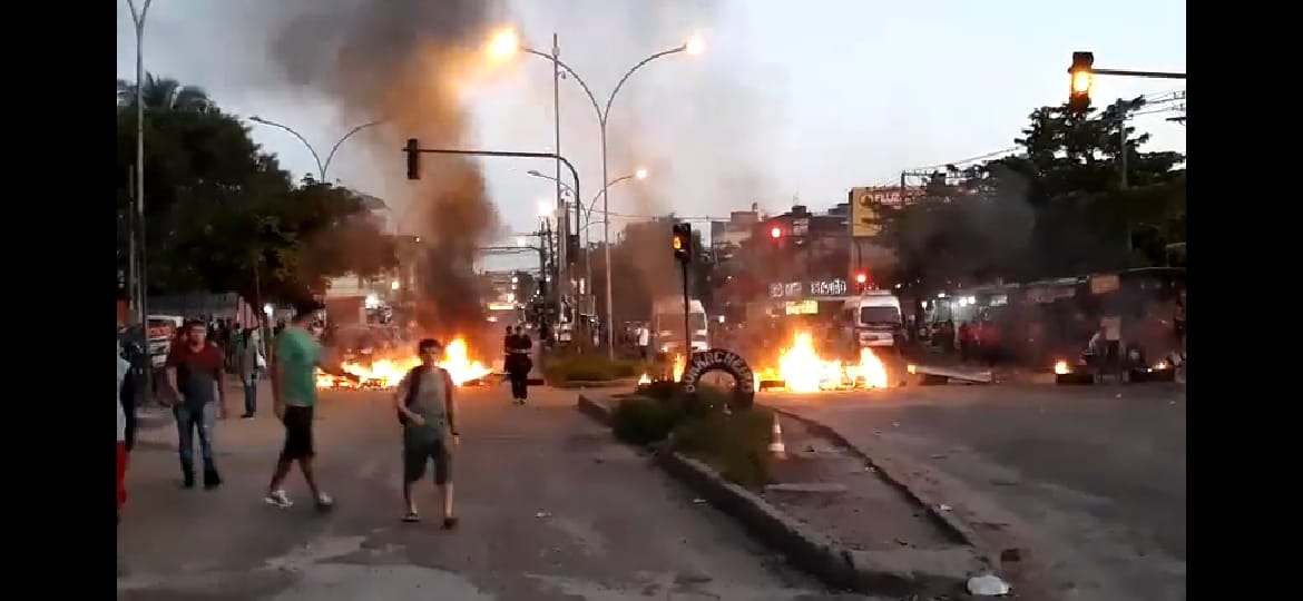 Manifestantes chegaram a atear fogo em madeiras e pneus para bloquear via