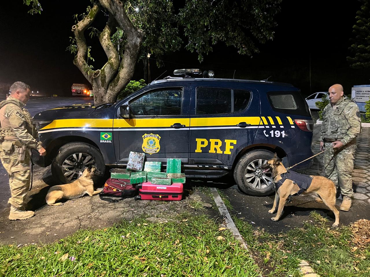 O ônibus, que seguia de São Paulo (SP) para Afonso Cláudio (ES), foi abordado por volta de 1 hora da manhã. Durante a inspeção no bagageiro externo, cães farejadores do Grupo de Operações com Cães da PRF/RJ sinalizaram a presença de substâncias ilícitas em bagagens pertencentes a uma passageira.