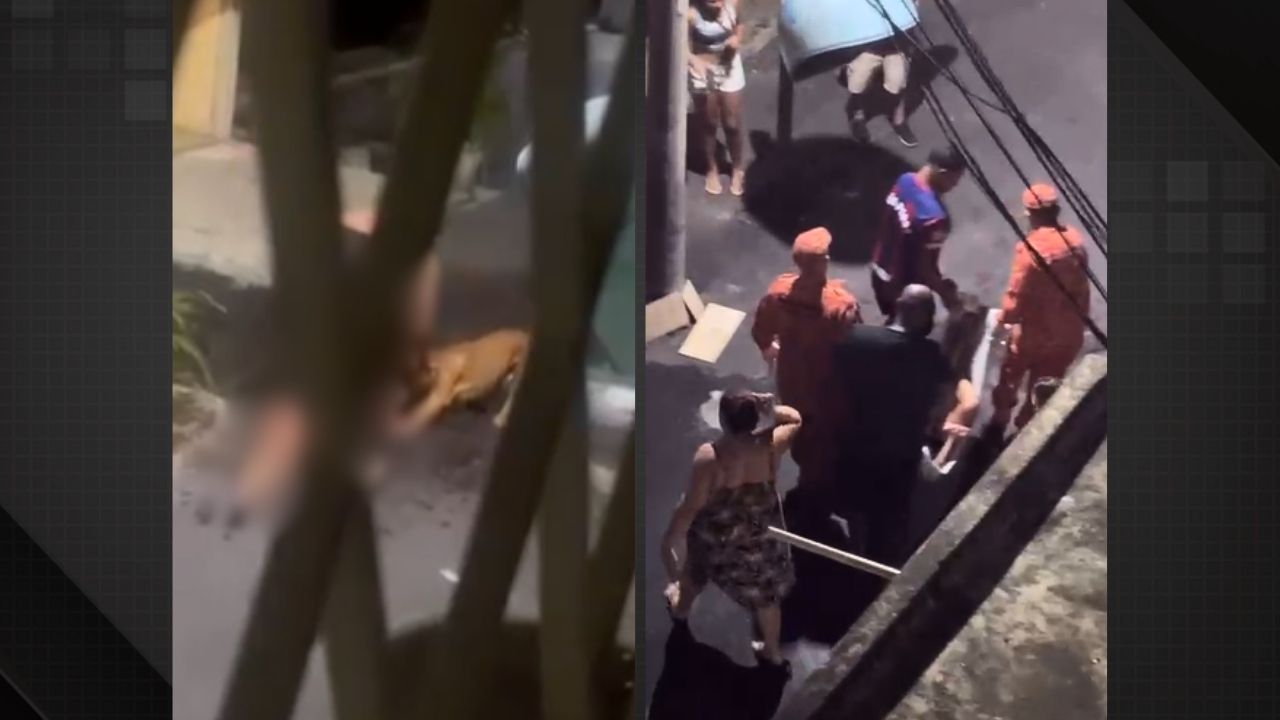 Mulher e vizinho são atacados por pitbull em condomínio de Ramos; vídeo