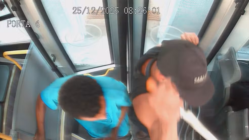 De acordo com a investigação, cerca de três minutos após o embarque, teve início o assalto. Um dos suspeitos, que usava blusa preta e fones de ouvido, ameaçou uma passageira com uma faca, enquanto outro abordou um passageiro que reagiu, causando tumulto no interior do ônibus.