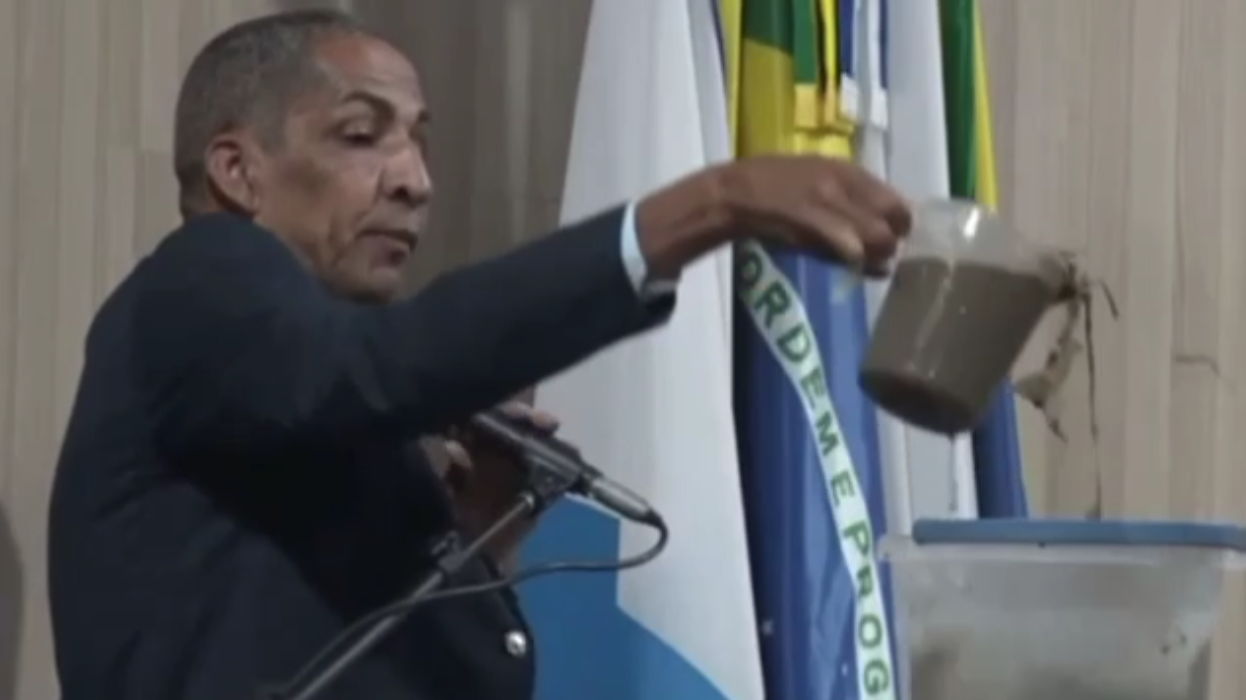 [VÍDEO] Vereador derrama balde com esgoto em plenário da Câmara de Campos