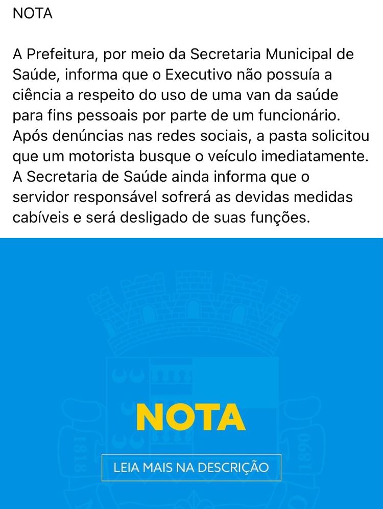 Nova Friburgo: Prefeitura vai afastar servidor que usou van da Secretaria de Saúde para fins pessoais