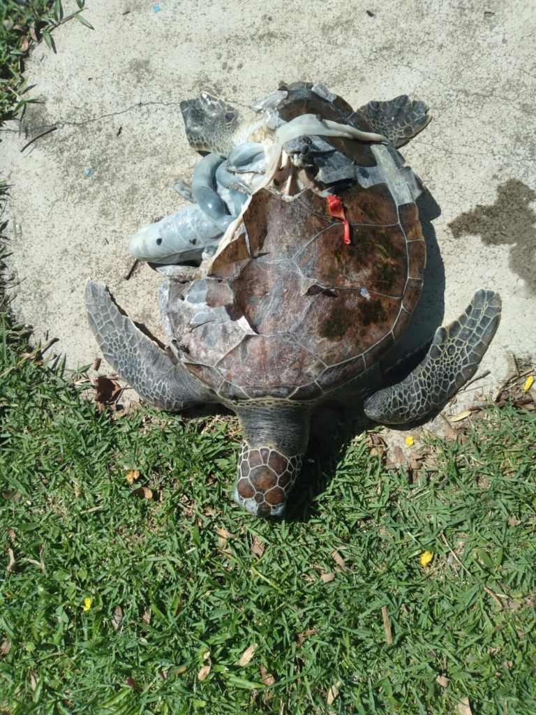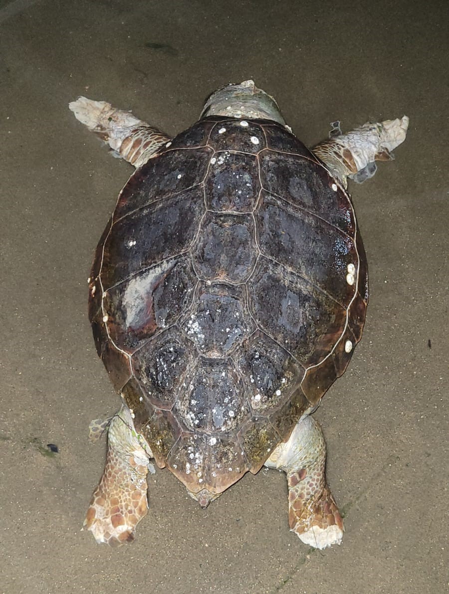 O último animal encontrado pela ONG, na última semana, tinha cerca de 1 metro de comprimento e apresentava um corte profundo no pescoço e o casco quebrado. Segundo a ONG, muito provavelmente causado pela hélice de alguma embarcação.