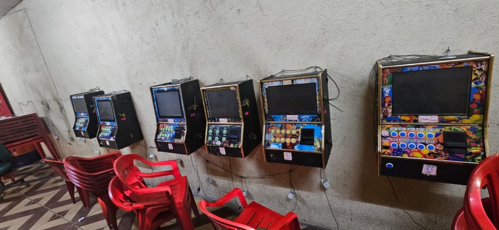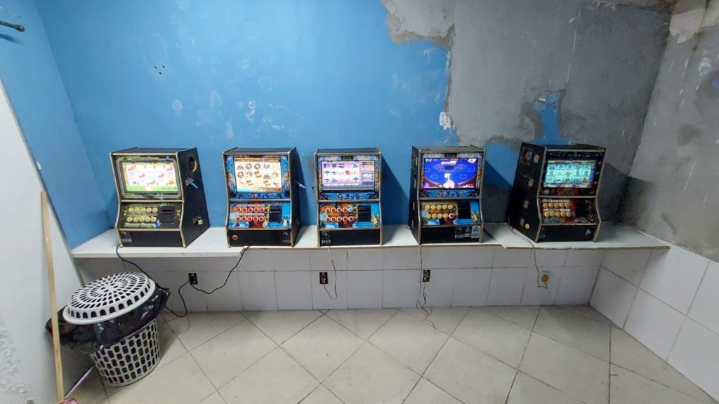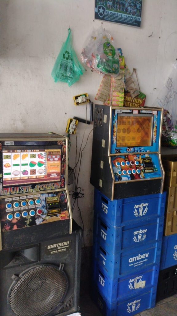 Na Avenida Canal das Taxas, na região do Terreirão, no Recreio dos Bandeirantes, Zona Oeste, cinco máquinas caça níqueis foram apreendidas.