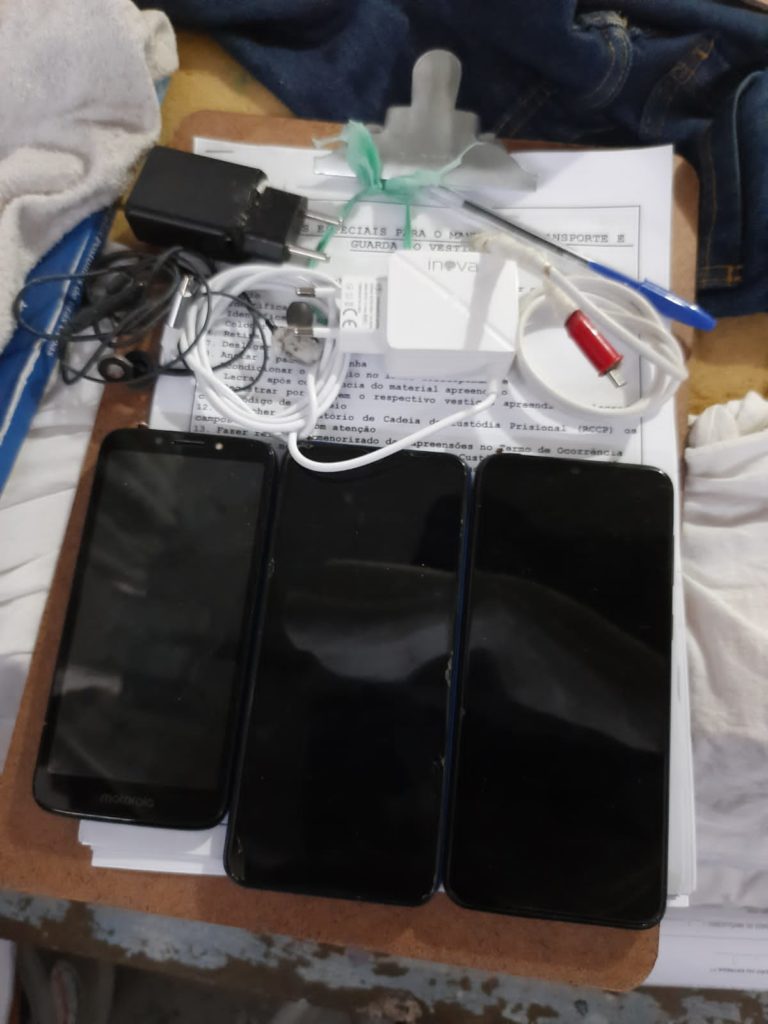 Também foram apreendidos celulares em pacotes de biscoito e em meio às fibras das vassouras usadas pelos “faxinas”. Chips de celulares estavam escondidos nas paredes descascadas das galerias. Todo material apreendido foi levado para a Delegacia da região, para confecção do Registro de Ocorrência.