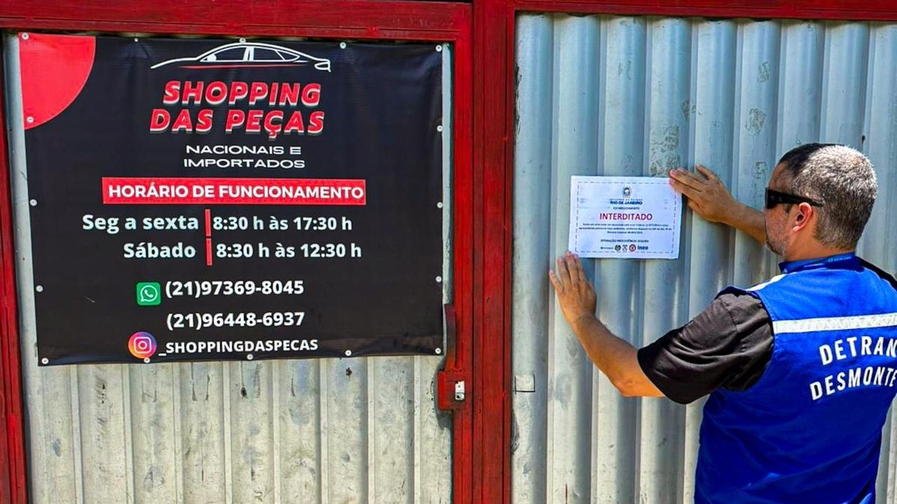 A Operação Desmonte reúne Detran RJ, polícias Civil e Militar, INEA, Secretaria de Fazenda e Corpo de Bombeiros. Desde agosto de 2023, a força-tarefa já interditou 148 ferros-velhos irregulares em 73 operações no estado.