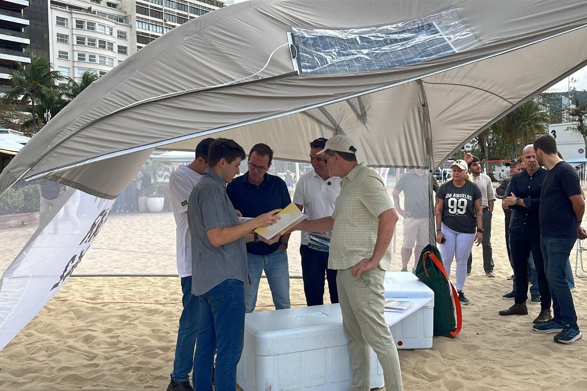 Os novos modelos de barracas de praia e o sistema de monitoramento de ruídos foram apresentados em um evento na Praia de Copacabana