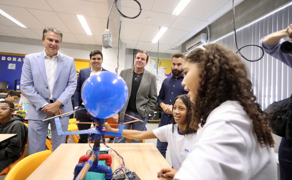 Também na Zona Norte, o ministro Camilo Santana visitou o Ginásio Experimental Tecnológico (GET) Elza Soares, no Rocha, pioneiro no modelo de educação mais inovador do Brasil. A visita foi guiada pelo prefeito Eduardo Paes e pelo secretário de Educação, Renan Ferreirinha.