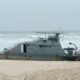 Uma embarcação de apoio, identificada como Marlim, permanece encalhada na faixa de areia da Praia da Macumba, no Recreio dos Bandeirantes, Rio de Janeiro. A situação...