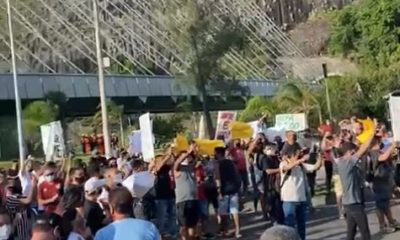 Manifestantes realizam protesto na Avenida Ministro Ivan Lins na tarde desta quinta-feira (4), contra as novas medidas de restrição anunciadas pela Prefeitura do Rio. Segundo o...