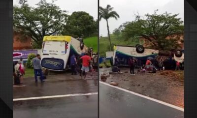 Pelo menos 23 pessoas ficaram feridas após um ônibus capotar na manhã desta terça-feira (20) na BR-356, em Itaperuna, no Noroeste Fluminense. O Corpo de Bombeiros...