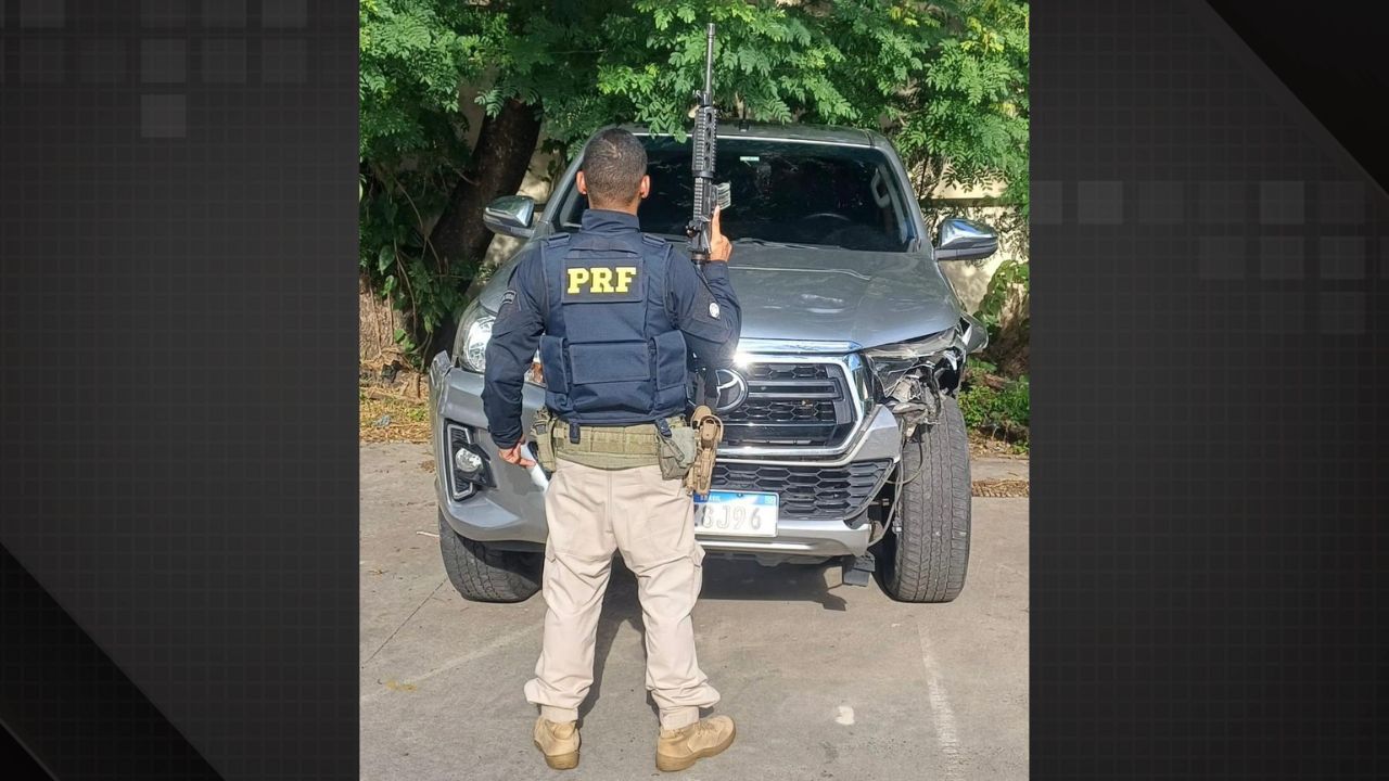 Agentes da Polícia Rodoviária Federal deram ordem de parada para uma picape branca trafegando em alta velocidade que tentou fugir