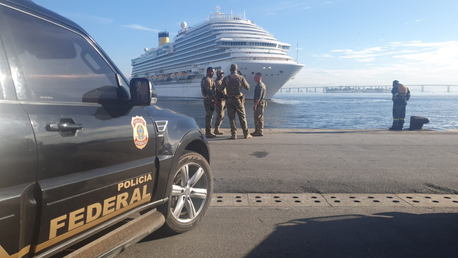 Policiais federais prenderam, na manhã deste sábado (24), um homem com quase 5kg de cocaína em um navio de cruzeiro, na Baía de Guanabara. A droga foi encontrada durante o cumprimento de um mandado de prisão preventiva.