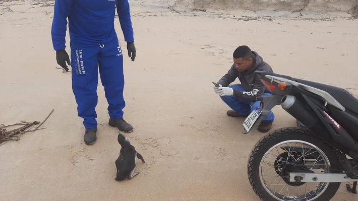 Pinguim é resgatado dentro de lixeira em Cabo Frio