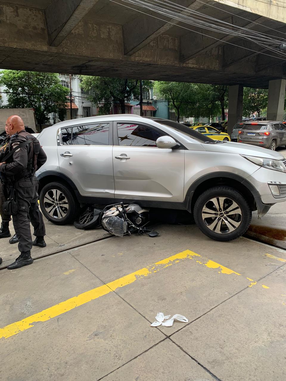 Um PM, de folga, reagiu a uma tentativa de assalto, na Avenida Paulo de Frontin, no Estácio, na tarde desta terça-feira (9). Um dos bandidos, não resistiu aos ferimentos e morreu, já outro foi encaminhado para o Hospital Municipal Souza Aguiar. Tiago Bastos teve a moto roubada e depois utilizada pelos criminosos, nesta ação.