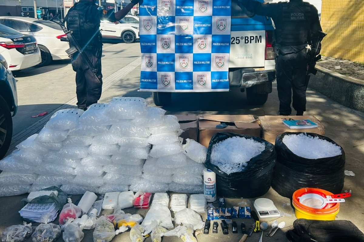 As drogas foram encontradas em uma casa abandonada na Rua Treze de Maio. Segundo a Polícia Militar, o imóvel servia como local de armazenamento e preparo do material para distribuição na região.