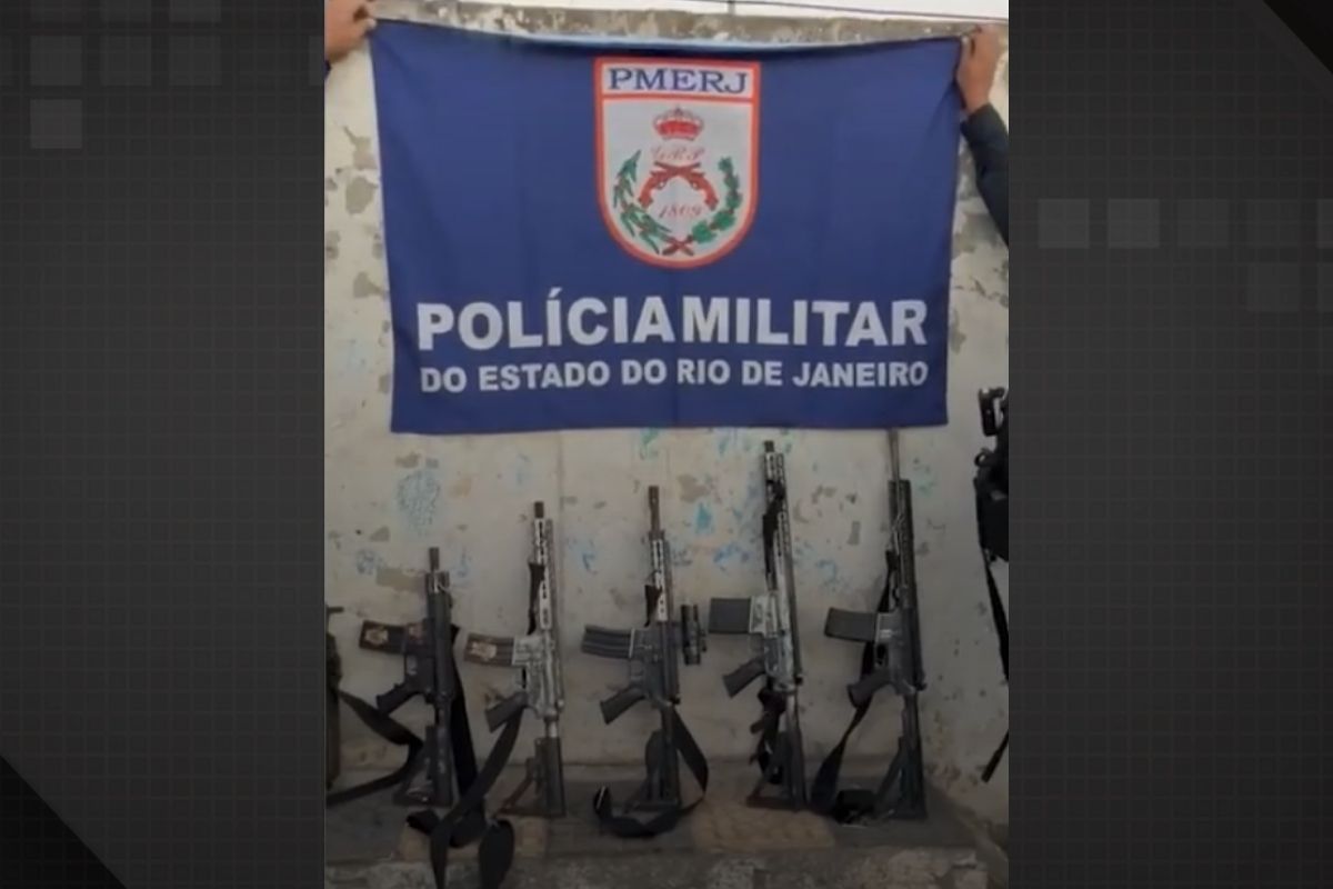 Em Duque de Caxias, na comunidade do Dique, agentes do 15º BPM apreenderam seis fuzis durante varreduras, após um ataque armado que matou uma mulher e uma criança. O alvo inicial era um policial militar da reserva.