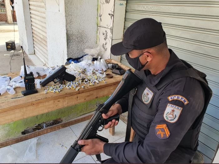 Na ação, uma pistola, munições, um rádio transmissor e farto material entorpecente foram apreendidos. A Assessoria de Imprensa da PM informa que a ocorrência foi encaminhada à 27ª DP (Vicente de Carvalho).