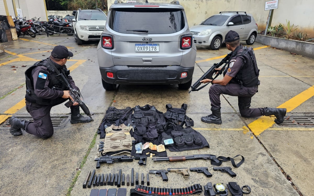Com os milicianos foram encontradas quatro pistolas, uma espingarda, carregadores de pista, coletes táticos, munições, celulares e dinheiro