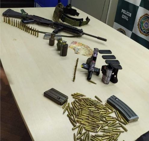 Os suspeitos foram presos em flagrante por porte ilegal de arma, extorsão e organização criminosa. Com os homens foram apreendidos, um fuzil calibre 7,62, uma pistola 9mm, munições, três granadas e uma grande quantia em dinheiro.