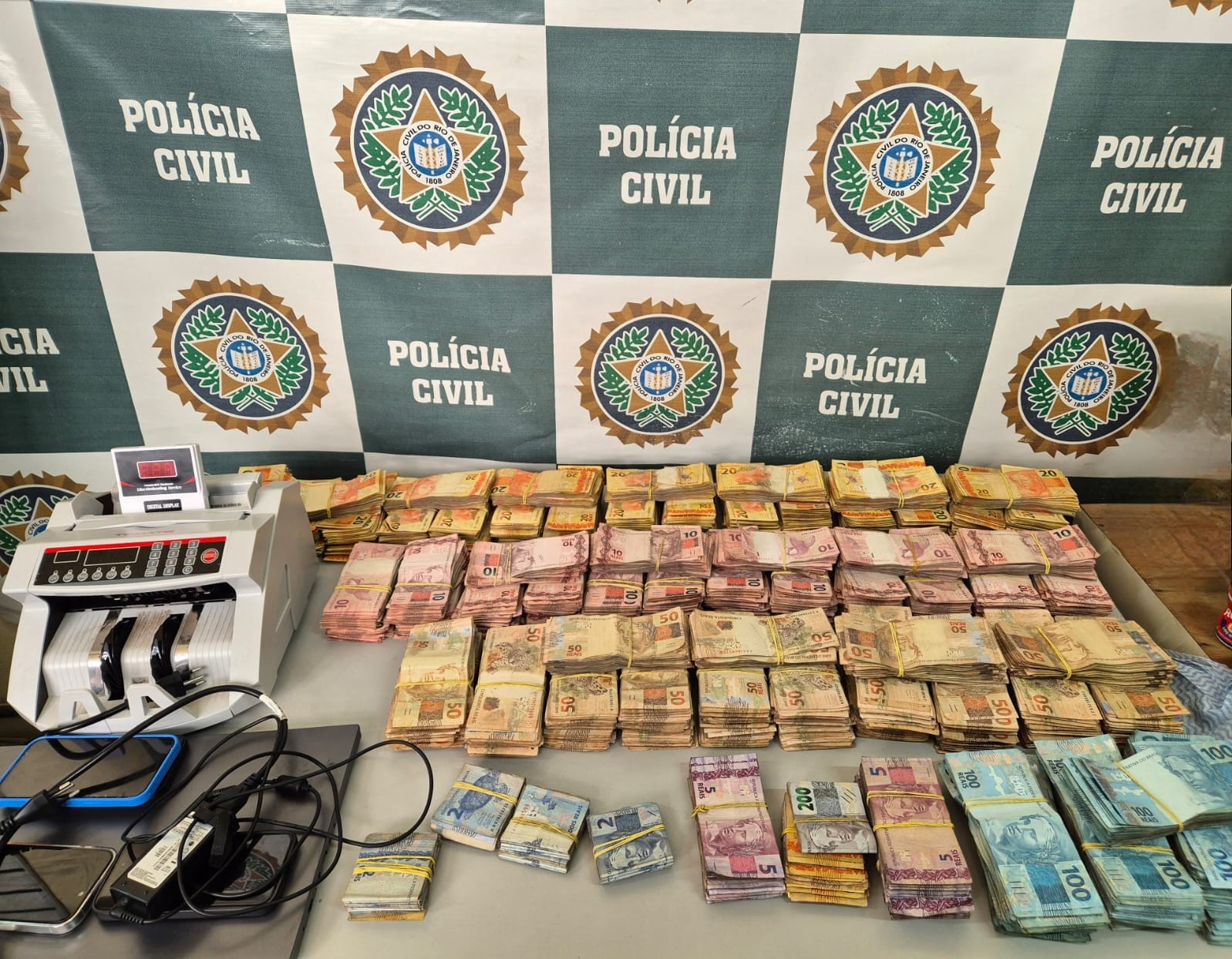 Agentes da Delegacia de Homicídios da Capital (DHC) apreenderam na residência de Arthur Silva, um dos investigados, dois carros de luxo, notebook, celulares e 298 mil reais em espécie. Na casa de outro alvo da operação, Rafael Guimarães Pereira, foram apreendidos um veículo de luxo e três telefones celulares.