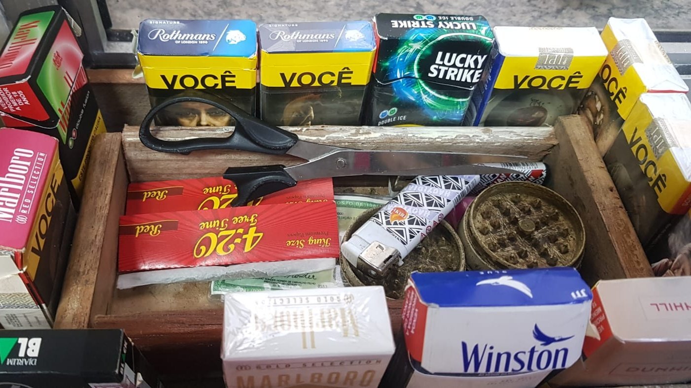 Segundo informações da Polícia, o acusado seria traficante de drogas e estaria disfarçado para poder traficar drogas na região. Com o criminoso, foram encontrados maços de cigarro, isqueiros e materiais para a manipulação de drogas, tais como maconha.