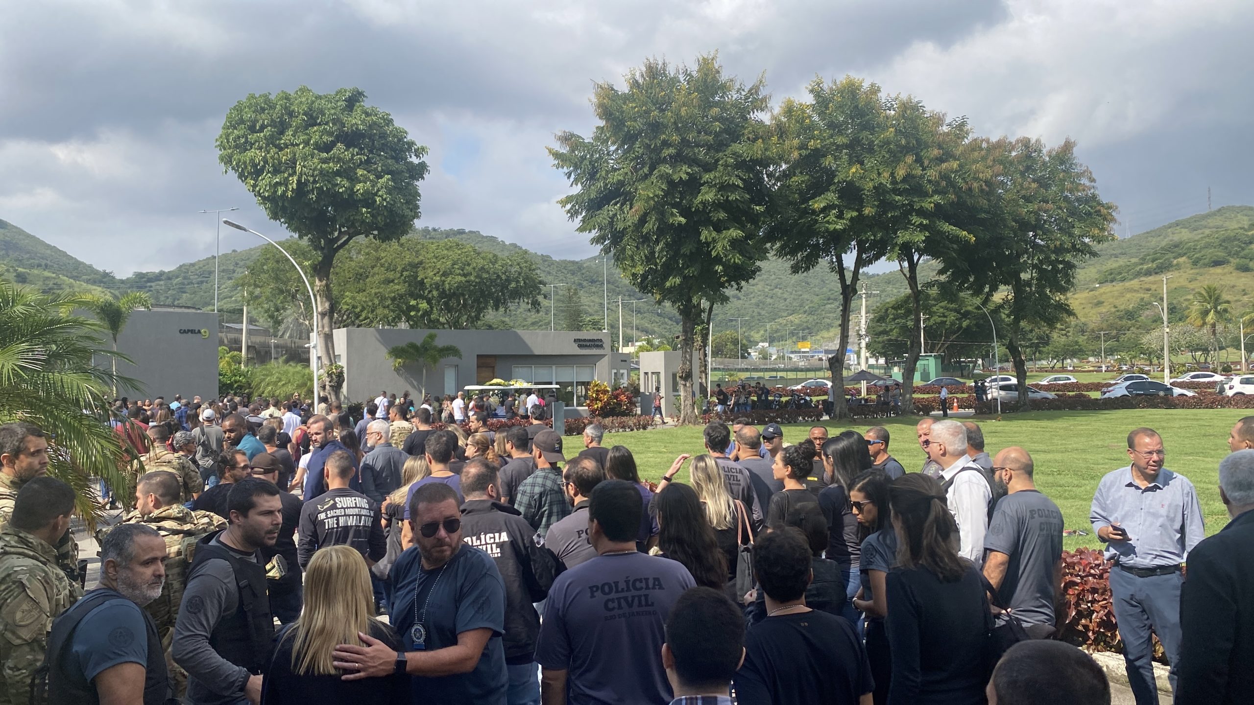 Além da família, amigos de farda participam de velório de policial civil morto por militares da Marinha – Foto: Tatiana Campbell/Super Rádio Tupi