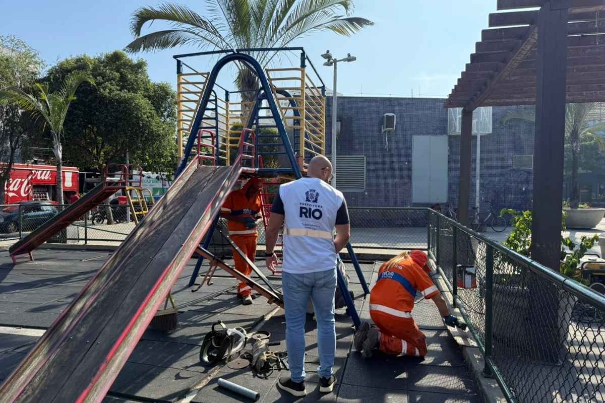 Praça Varnhagem é revitalizada com novos brinquedos e piso sintético na Tijuca