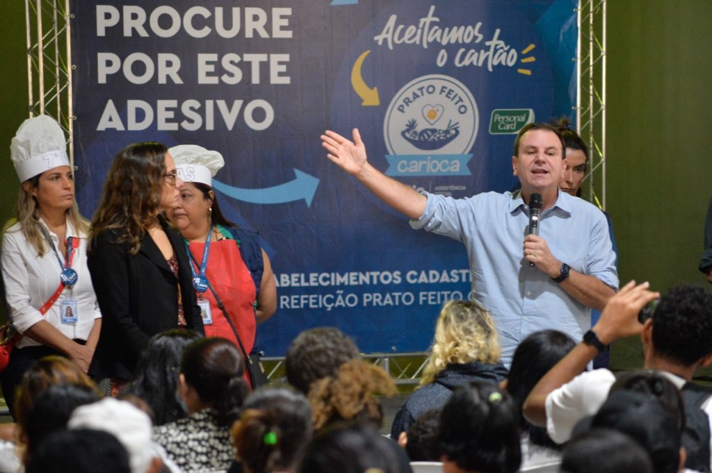 “Todo mundo que tem emprego formal pela lei brasileira tem direito a fundo de garantia, vale-transporte, ticket refeição e uma série de benefícios. O que acontece com o Brasil há quase 10 anos, mas especialmente nos últimos anos? Uma crise econômica desgraçada, o desemprego aumentando, todo mundo sabe disso. A maior parte dos empregos são informais, as pessoas não têm carteira assinada e acabam não tendo direito nenhum. Esse Cartão Prato Feito é o ticket refeição que quem é trabalhador informal não tem. Com os Centros de Assistência Social, trabalho feito pela Secretaria de Assistência Social, a Prefeitura consegue mapear a cidade, quem são as pessoas que estão na informalidade e podemos ajudar. Esse é o ticket refeição de vocês”, afirmou o prefeito Eduardo Paes.