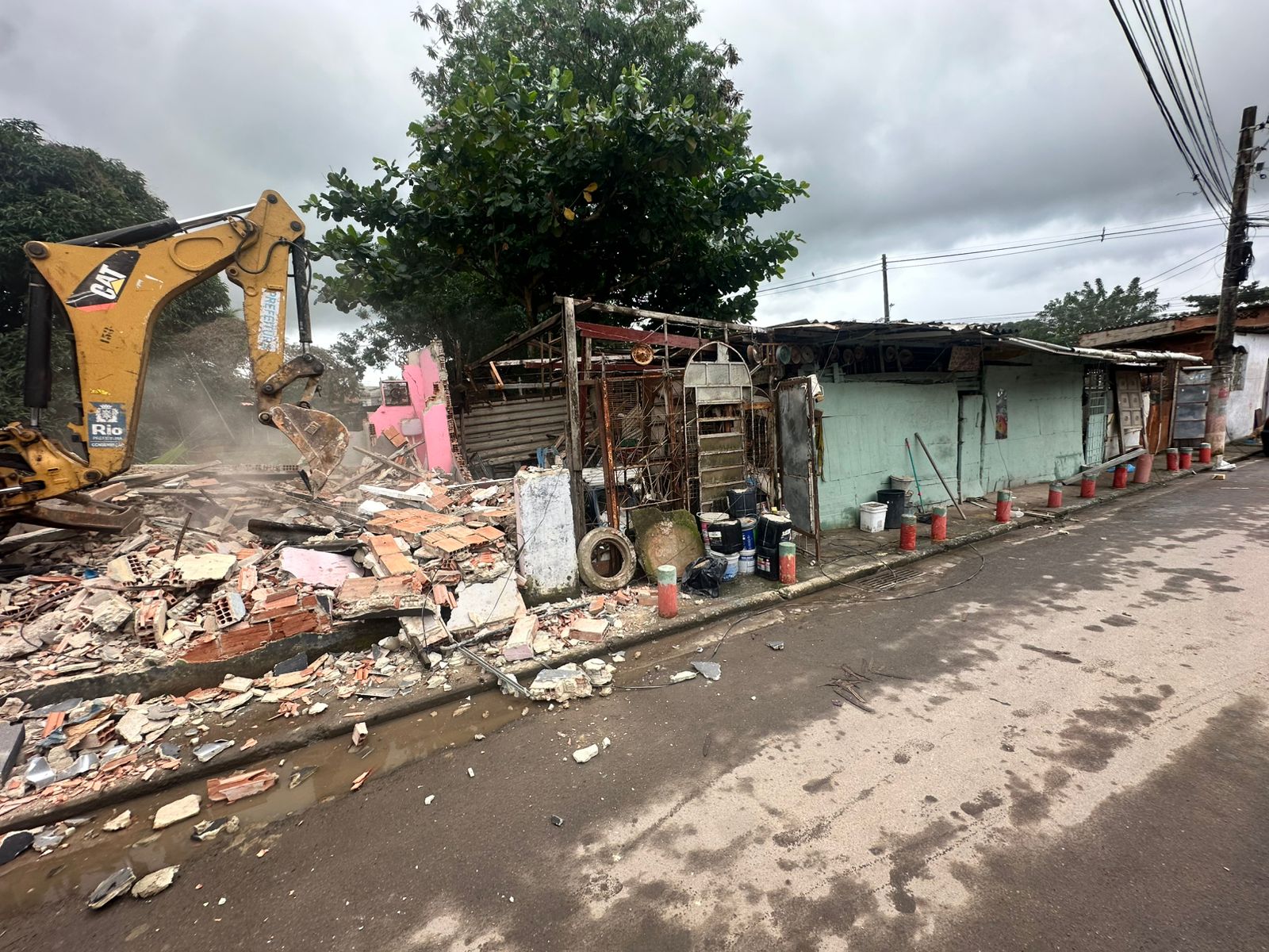 A Secretaria Municipal de Ordem Pública e a Subprefeitura da Zona Oeste III realizaram, nesta quinta-feira (12), a demolição de 10 construções irregulares instaladas às margens do canal do Rio Cação Vermelho, na Zona Oeste da cidade. As edificações funcionavam como estabelecimentos comerciais e ocupavam cerca de 800 metros quadrados.