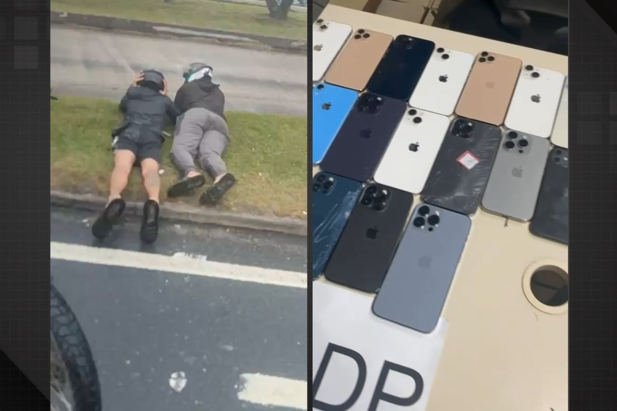 De acordo com a Polícia Civil, os dois criminosos haviam acabado de sair da comunidade Rio das Pedras com 18 aparelhos celulares roubados. Eles foram autuados por receptação.