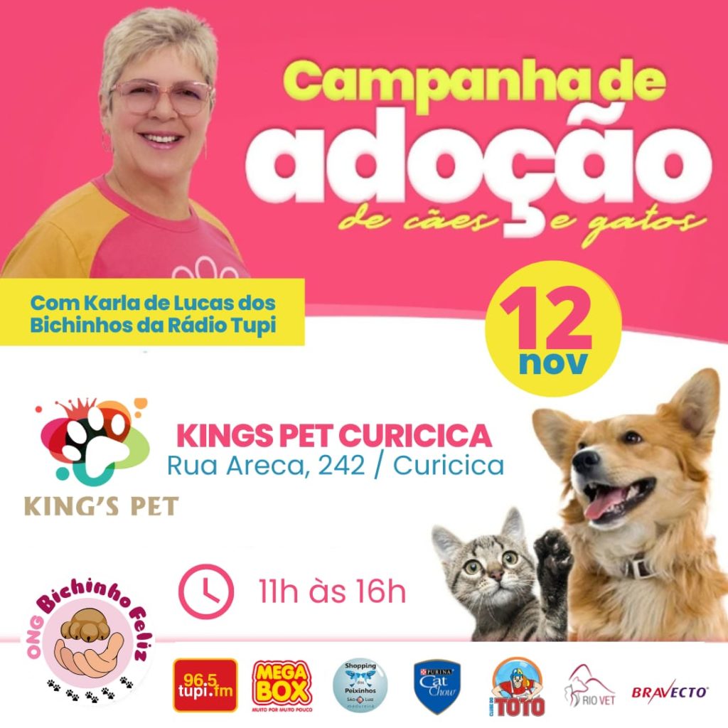 Os bichinhos, entre eles cães e gatos, estarão disponíveis para receber a visita do público das 11h ás 16h, na Kings PET, em Jacarepaguá, na Zona Oeste do Rio.