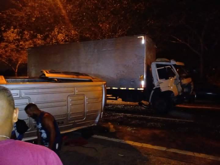 Um acidente entre um caminhão e uma van deixou quatro pessoas feridas durante a madrugada desta quinta-feira (11) na Avenida Brasil, altura de Campo Grande, no sentido Zona Oeste. De acordo com testemunhas, o motorista da van freou de repente e o caminhão acabou batendo na traseira do veículo, que capotou.