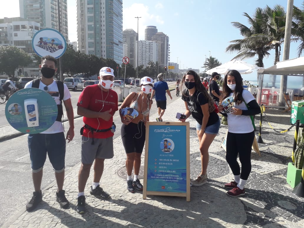 Neste domingo (19), a campanha acontece na Mureta do Leme, na Zona Sul do Rio, até às 15h. Equipes de promoção da Super Rádio Tupi orientam os frequentadores distribuindo máscaras, brindes, chinelos e álcool em gel.