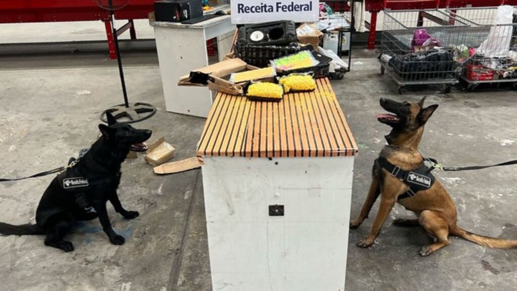 A ação foi conduzida pela Divisão de Vigilância e Repressão ao Contrabando e Descaminho da 7ª Região Fiscal (RJ/ES) com apoio dos cães farejadores Elektra, Kyra e Abby.