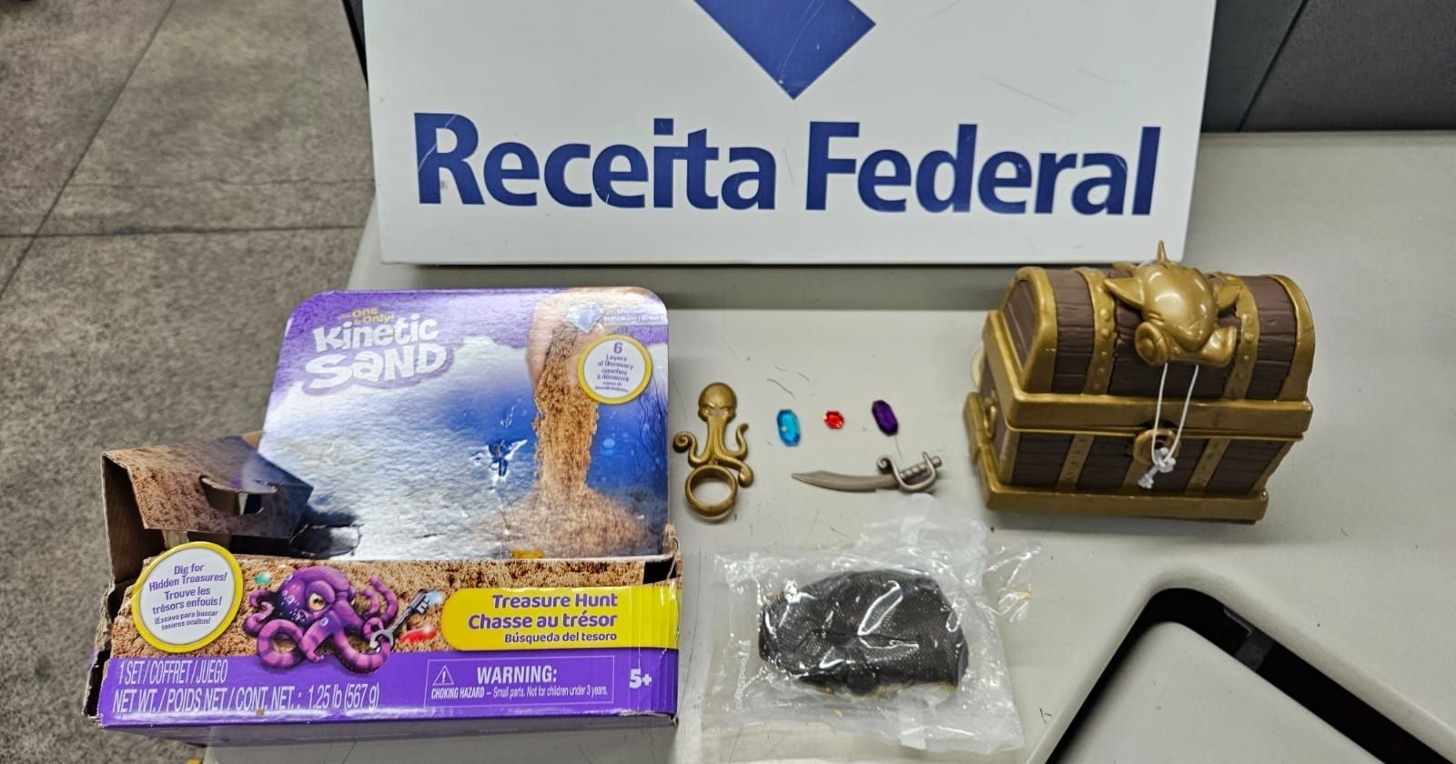 Fiscalização da RFB encontrou drogas em remessas vindas dos EUA; só em setembro quatro pacotes foram interceptados no GaleãoA Receita Federal do Brasil (RFB) apreendeu nesta quarta-feira (1º) 111 g de haxixe ocultos em um brinquedo com formato de baú, durante fiscalização no Aeroporto Internacional do Galeão, no Rio de Janeiro. A encomenda, enviada dos Estados Unidos, tinha como destino a cidade de Presidente Prudente (SP). O valor estimado da apreensão é de R$ 13.320,00.