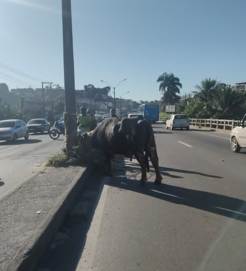 Búfalo na RJ-106 assusta motoristas em São Gonçalo