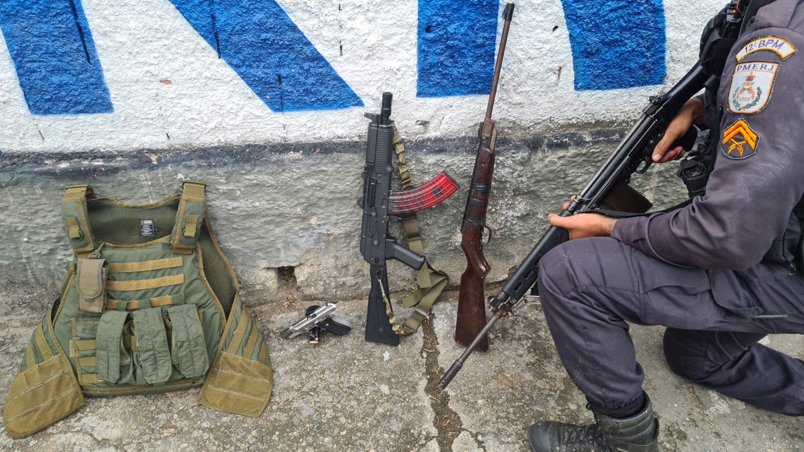 Ainda na ação, além dos dois presos, os militares apreenderam uma pistola, uma réplica de fuzil, uma espingarda de chumbinho, um rádio comunicador, uma capa de colete balístico e munições. A ocorrência foi registrada na 76ª Delegacia de Polícia, no Centro de Niterói.