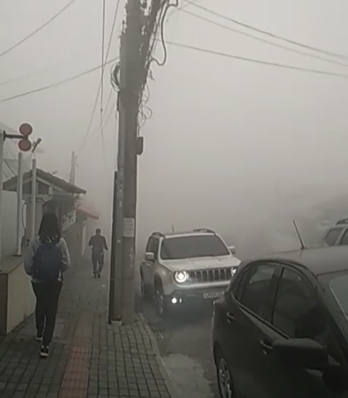 Moradores relatam transtornos com a névoa na cidade, atrapalhando a visão e ainda acompanhada de cheiro forte.