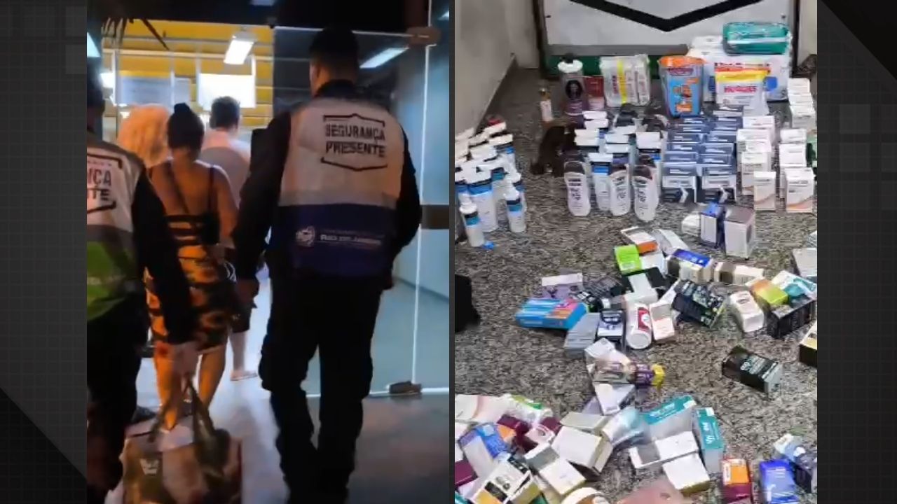 Durante a abordagem, os agentes encontraram 277 itens de farmácia, incluindo medicamentos, suplementos, cosméticos e produtos de higiene. Também foram apreendidas três sacolas com revestimento metálico, material usado para impedir o acionamento de alarmes nas lojas, além de um caderno com anotações sobre a venda dos produtos.
