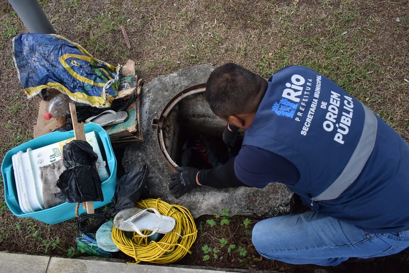 SEOP recolhe 250 quilos de objetos guardados dentro de bueiros no Centro e desmobiliza acampamento ilegal em Ipanema