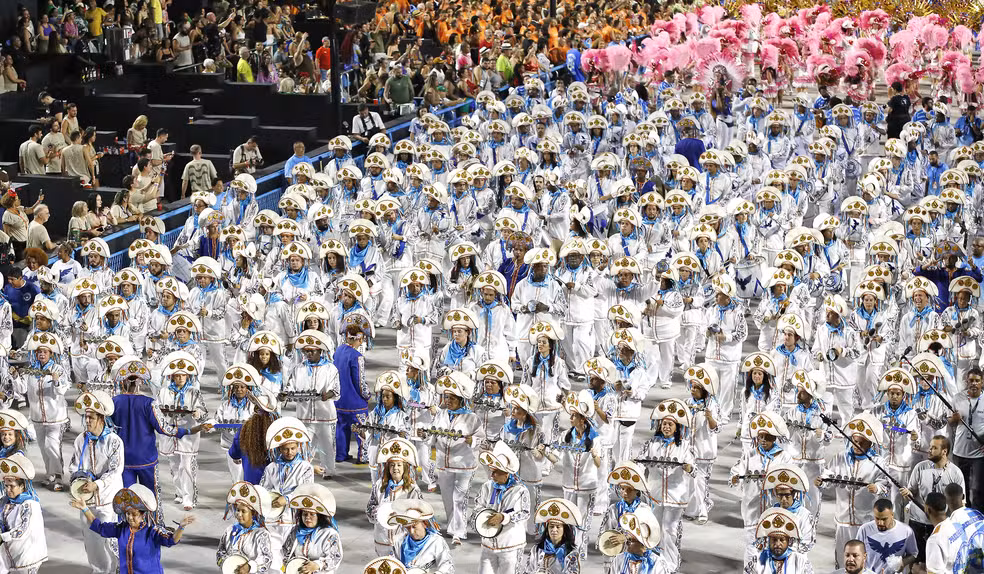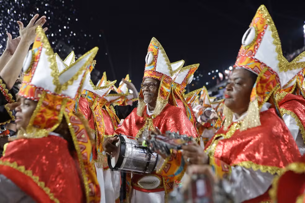Homenageou a escritora Conceição Evaristo, destacando sua trajetória e o conceito de “escrevivências”. A escola utilizou tons dourados e terrosos nas fantasias e alegorias. O samba-enredo foi um dos momentos mais marcantes da noite, e a autora participou do desfile desde o abre-alas até a dispersão.