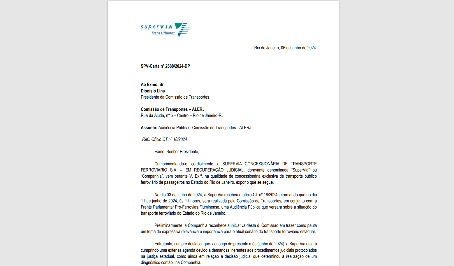 SuperVia avisa que não irá comparecer em convocação pública nesta terça (11)
