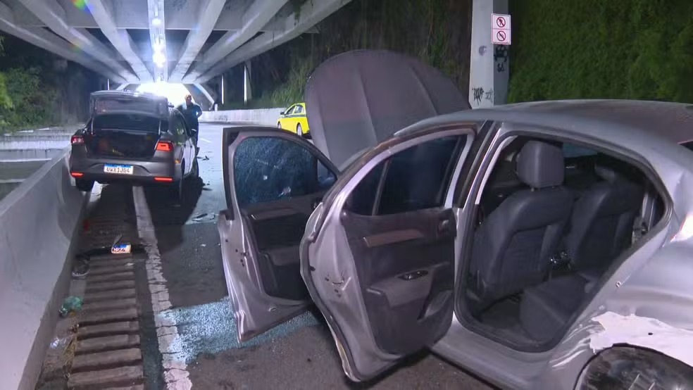 Os suspeitos, que estavam com réplicas de pistola, abandonaram o veículo e tentaram fugir a pé; dois deles se jogaram de um viaduto