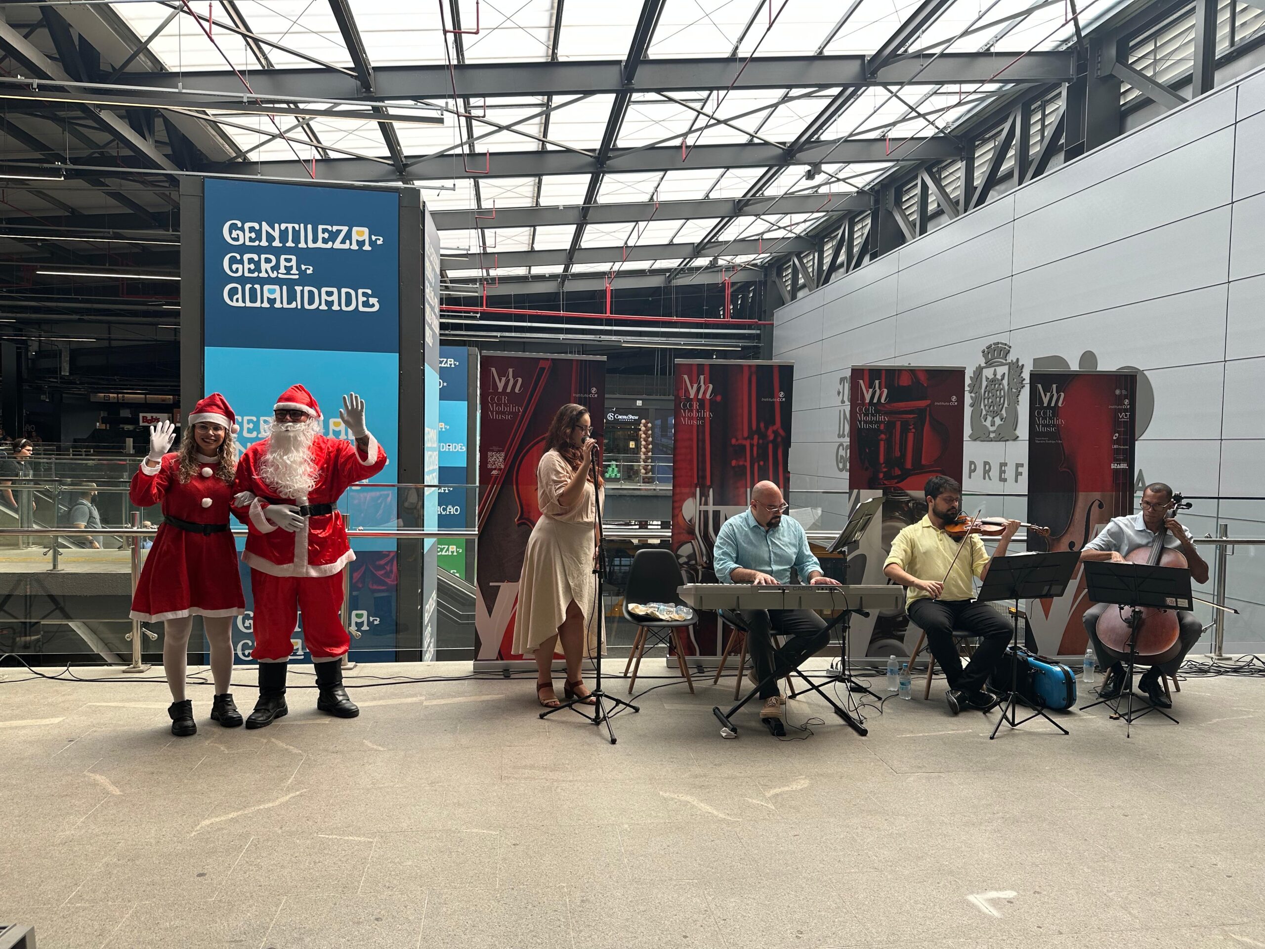 Músicos do projeto CCR Mobility realizam concerto ao vivo e Papai Noel marca presença para receber os passageiros. Caixa de arrecadação estará disponível até o fim do ano