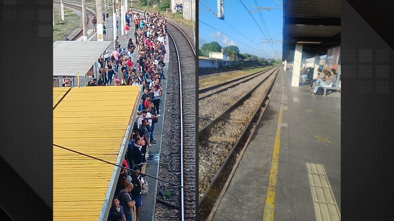 A interrupção gerou aglomerações nas estações de Saracuruna e em outras da região de Caxias. Nas plataformas, passageiros aguardam há bastante tempo por composições.