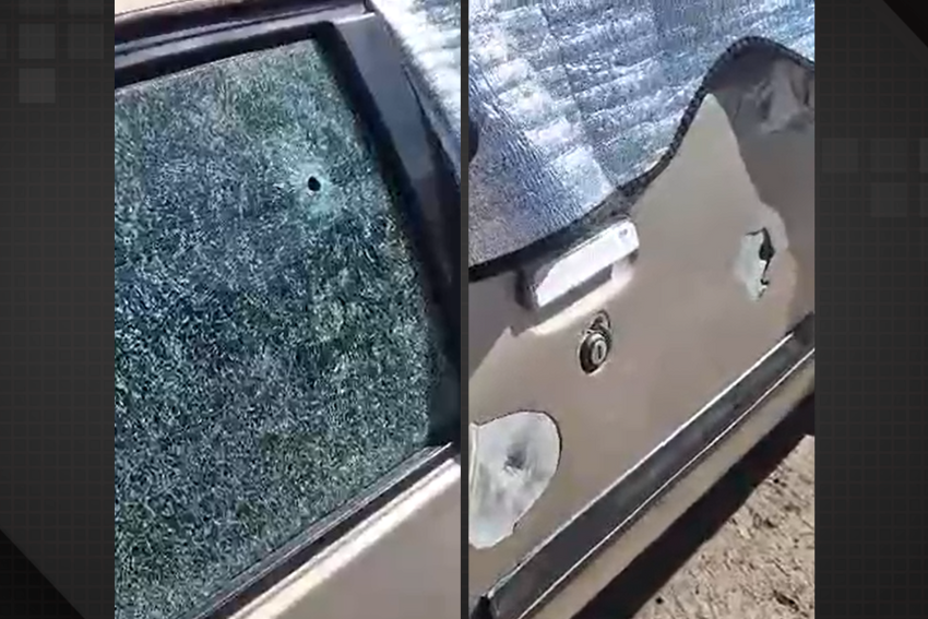 Um veículo que estava estacionado estacionado foi atingido por diversos disparos, que também atingiram árvores e o muro de um condomínio