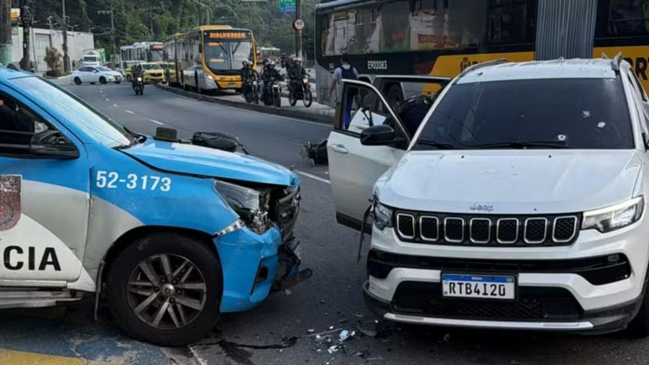Houve confronto, e o carro acabou colidindo com a viatura da PM, que ficou parcialmente destruída. Três homens foram baleados durante a troca de tiros. Um deles morreu no local, e os outros dois foram socorridos para a Unidade de Pronto-Atendimento (UPA) da Taquara, onde um ainda permanece em atendimento médico e outro veio a óbito.