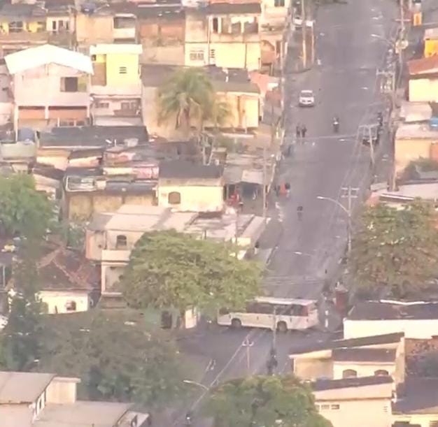 Traficantes atravessam ônibus para impedir entrada da PM na Vila Aliança
