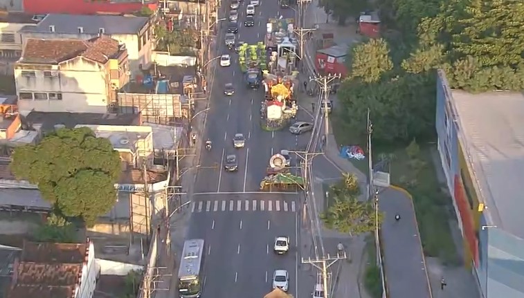 A via está com uma faixa ocupada em cada sentido e há muito congestionamento na região. A Avenida Ernani Cardoso também é afetada por esse deslocamento dos carros alegóricos.